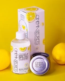 Features and Benefits Start cleaning your tools like a PRO with Cinema Secrets Makeup Brush Cleaner and Cleansing Tin. Stubborn waterproof and long wear makeup melts away and brushes dry almost instantly, no water or rinsing required leaving a pleasant lemon scent. The aluminum tin is perfect for the “Dipping Method” for deep cleaning and the twist-top lid fits tight to avoid spills on the job. As soon as brushes are dry to the touch they are ready to use.