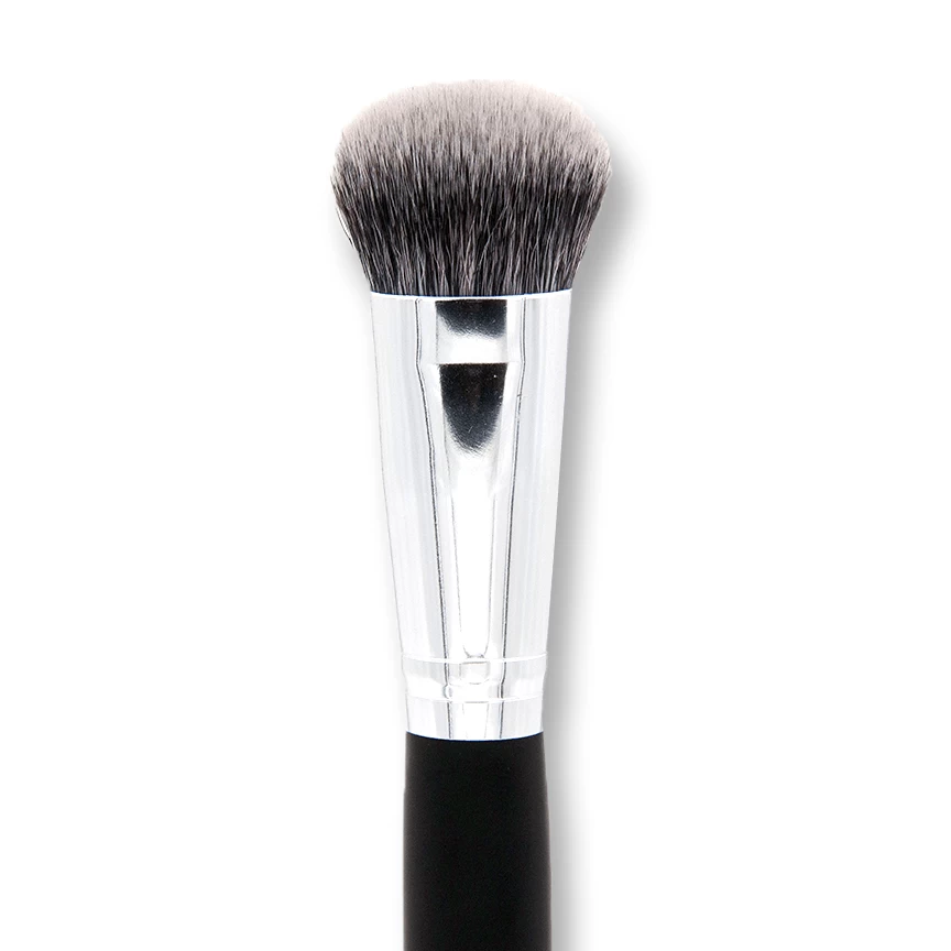 The Pro Lush Blush Brush’s compact head allows for a very controlled application of blush. Thanks to the super soft, dense synthetic bristles, this brush can be used with both powder and cream blushes and provide medium to full coverage for a more dramatic finish. The Pro Lush Blush Brush can also be used in the hollows of the cheeks and around the periphery of the face for a more natural and seamlessly blended contour effect.