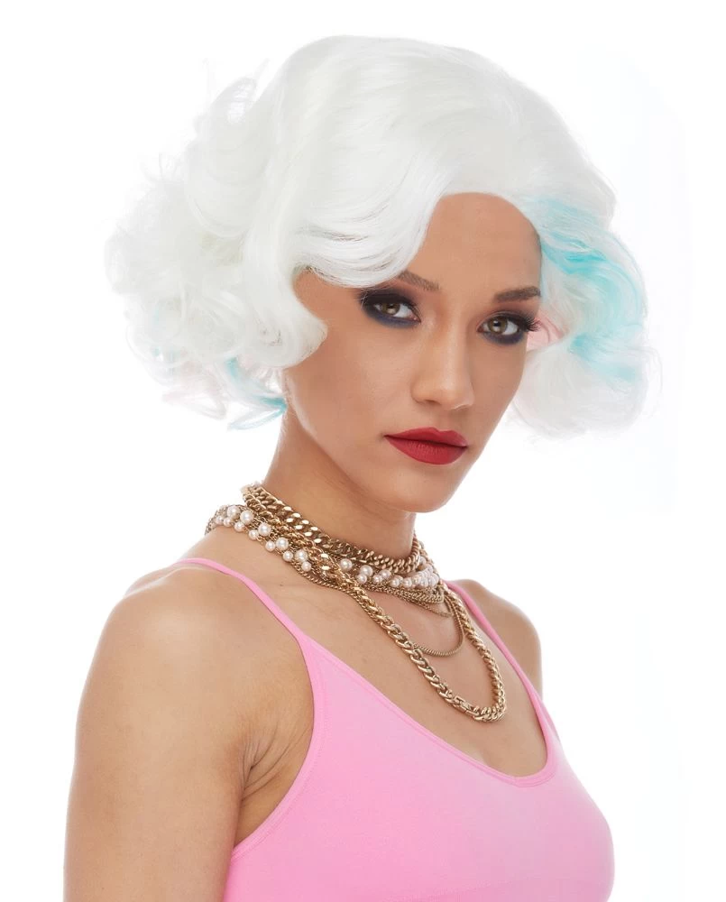 GORGEOUS, GLAMOUROUS WAVES MARRIED WITH THE ECCENTRIC STYLE OF DADDY’S LITTLE GIRL. THIS WIG IS COLORED IN EXTREME BLEACH BLONDE WITH A SPLASH OF LIGHT PINK AND BLUE.Â