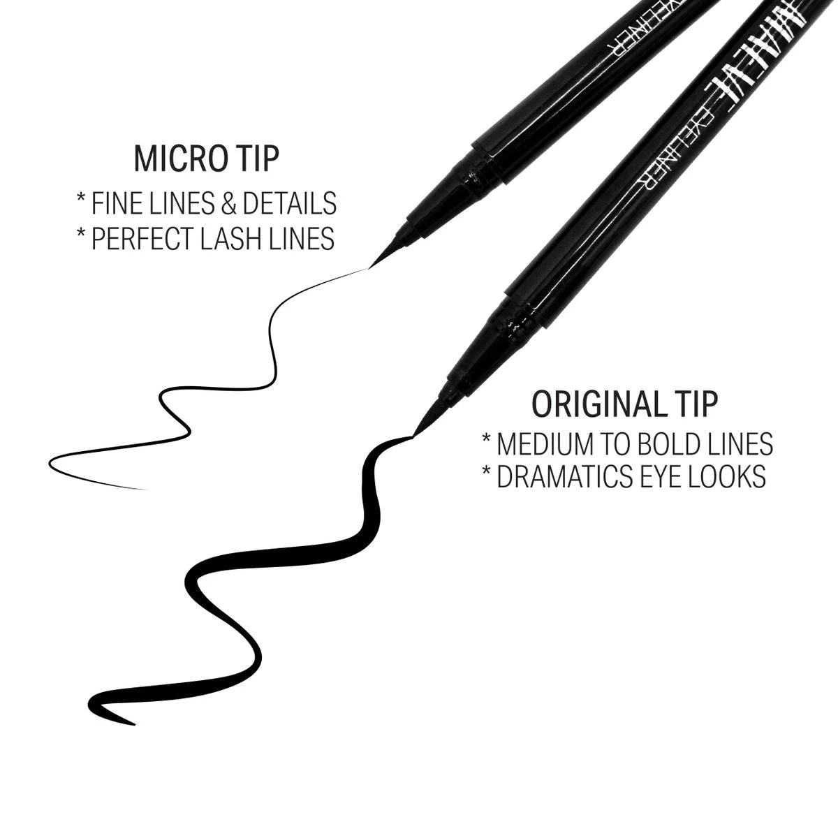 Magic Collection Maeve eyeliner pen set is a 2 in 1; applies with its own brush to draw a perfectly defined line. It gives you smooth lines & high-pigment, perfect black formula which instantly dries and won’t budge or flake.