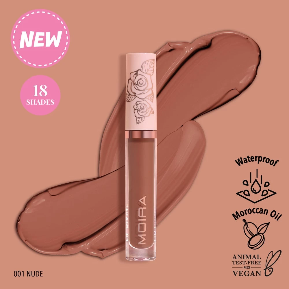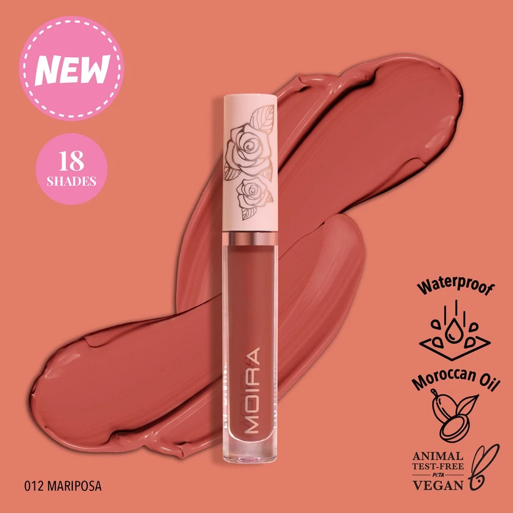 Moira Lip Divine liquid lipstick is a lightweight waterproof formula infused with castor oil, coconut oil, and argan(moroccan) oil for comfortable wear without drying your lips. A long-lasting formula that will glide on effortlessly, creating lips so divine you will even forget you’re wearing anything all!