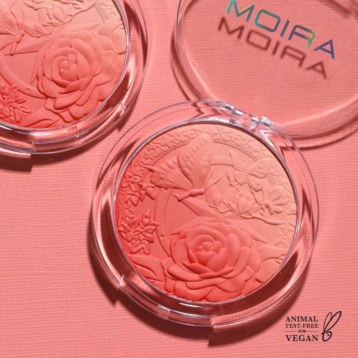 Moira Signature Ombre Blusher is a gorgeous gradient blush with a lightweight, silky formula that easily blends, delivering a high pigment payoff. A compact-sized floral dream of peachy tones for a natural-looking hue to your complexion. Swirl shades together for the best complimentary blend of color to your cheeks.