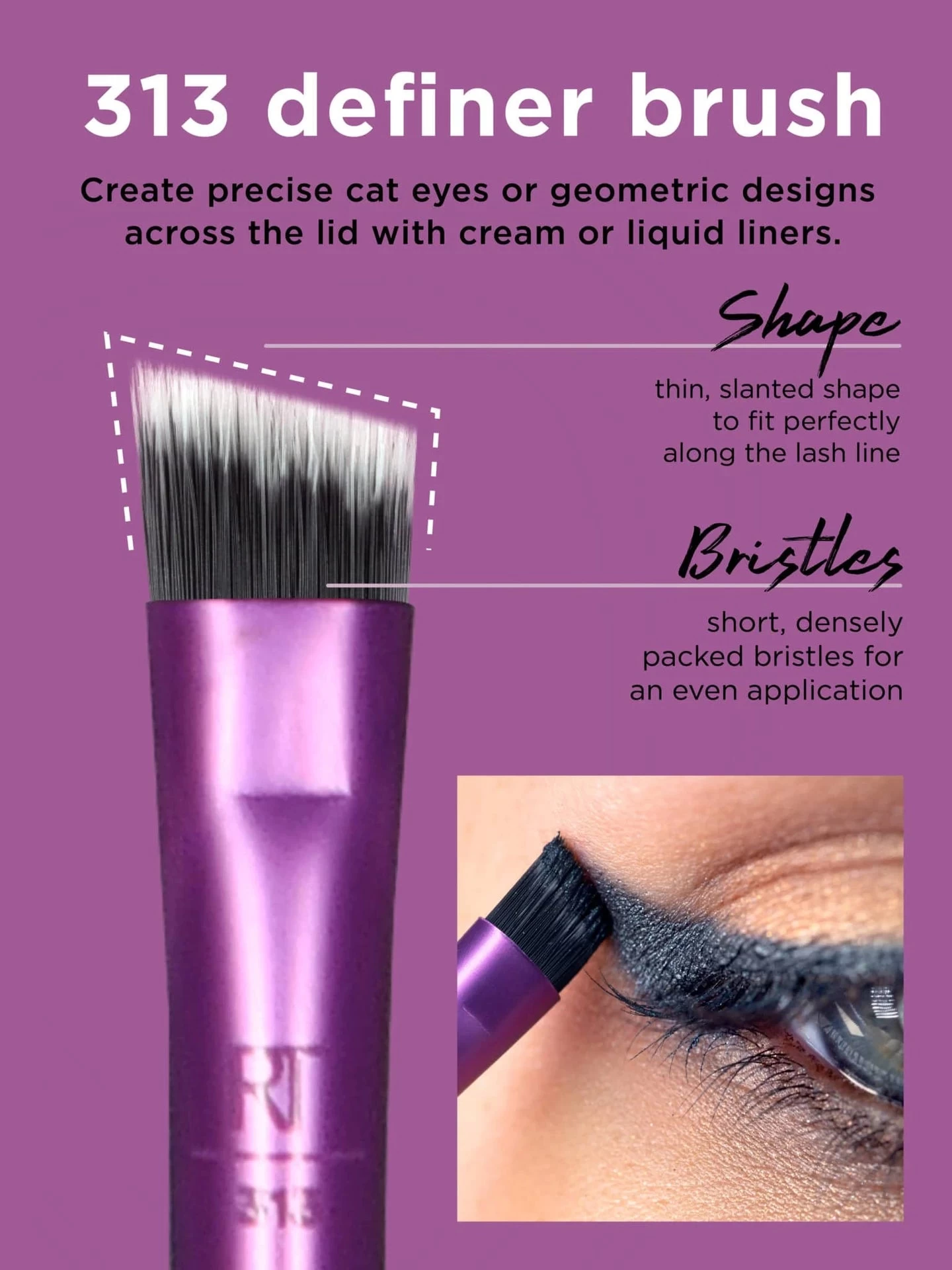 Our Real Techniques Everyday Eye Essentials Makeup Brush Set has every brush you need to create flawless eye looks from natural to glam: Shading Brush: build cream or powder color shades and intensify coverage. Essential Crease Brush: blend powder accent colors seamlessly within the creases of the eyelid. Defining Crease Brush: precisely lines + blends powder shadow for definition within the creases. Definer Brush: creates straight cat eyes and designs across the lid. Smudge Brush: blend and blur eyeliner and shadows along the lash line. Medium Shadow Brush: sweep and blend powder or cream base shadows. Lash Separator: helps separate mascara clumps. Fine Liner Brush: creates crisp lines of liquid or gel eyeliner.