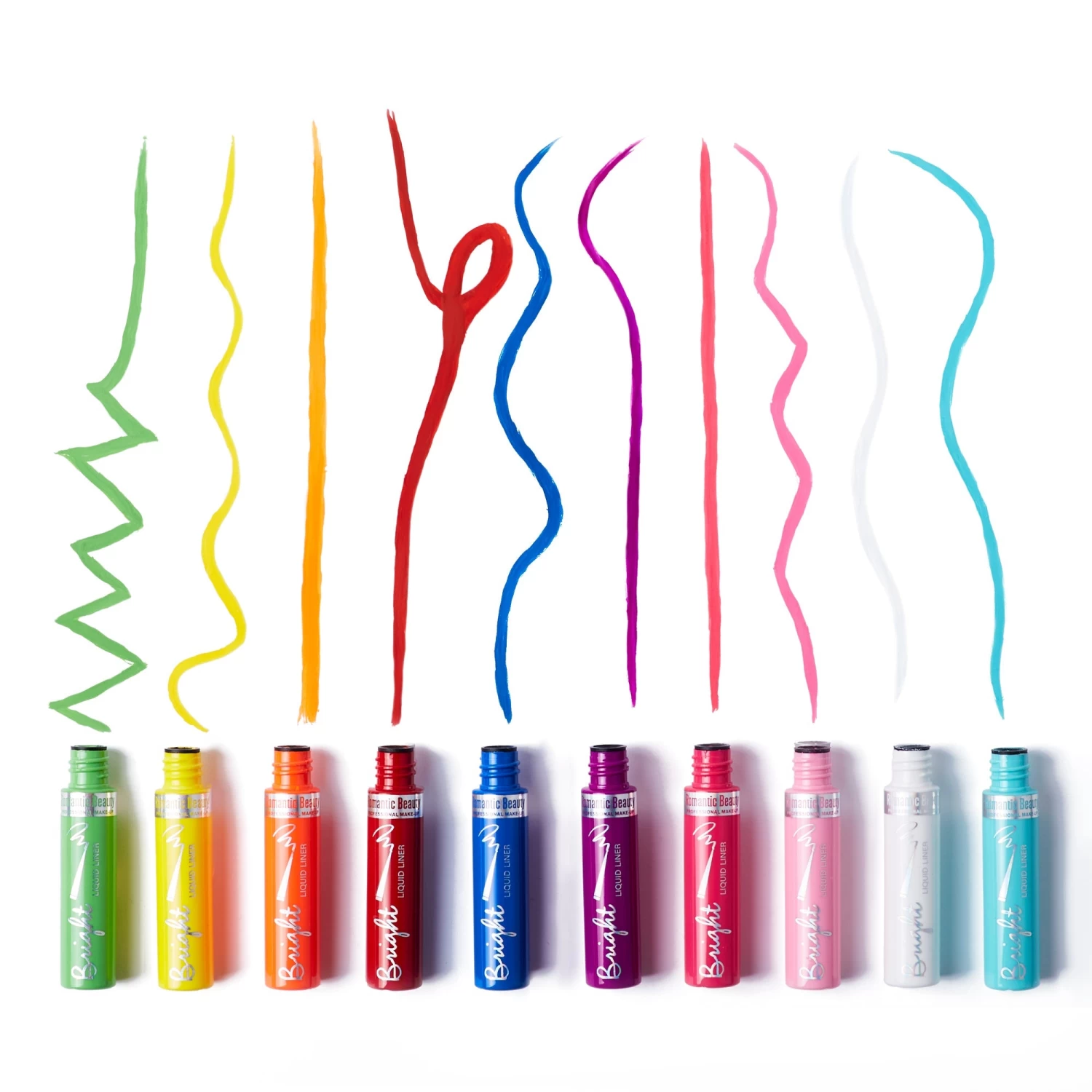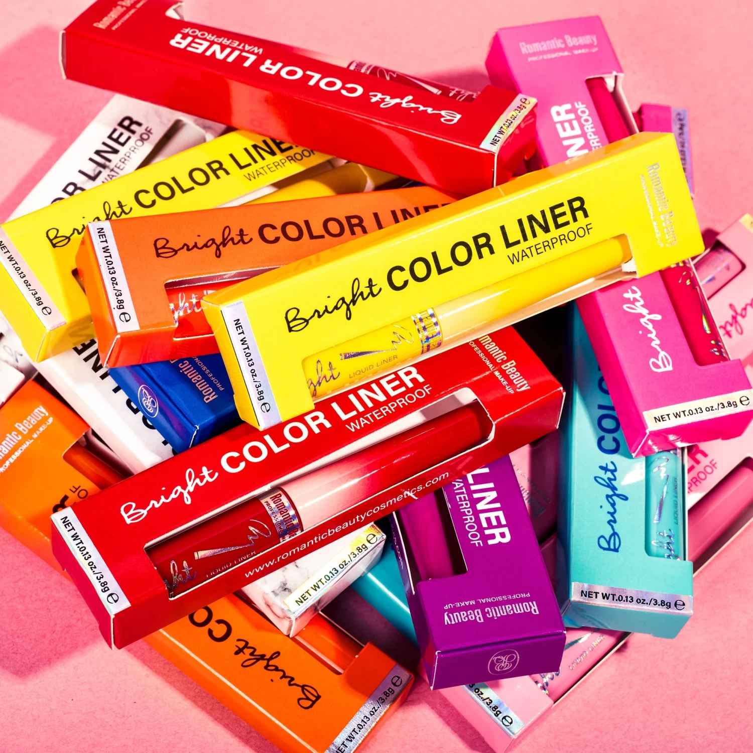 Vibrant opaque liquid color with just one swipe! Romantic Beauty’s long-lasting Bright color liquid eyeliners count with an ultra-thin brush for flawless and precise application. Available in ten vivid shades, the Bright color liquid eyeliners’ quick-drying formula never flakes or cracks! Apply it over eyeshadow for an extra pop of color, or wear it on its own to make it the star of the show!